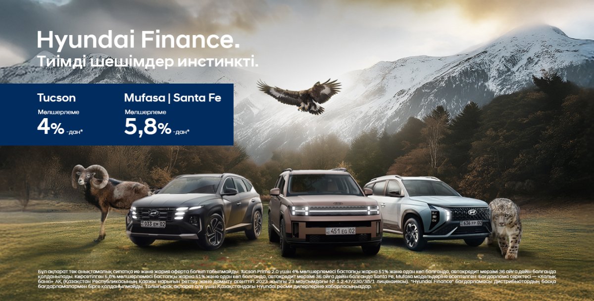 Tucson бестселлері, технологиялық Mufasa және кең флагман Santa Fe енді жеңілдетілген автокредит шарттарымен қол жетімді.