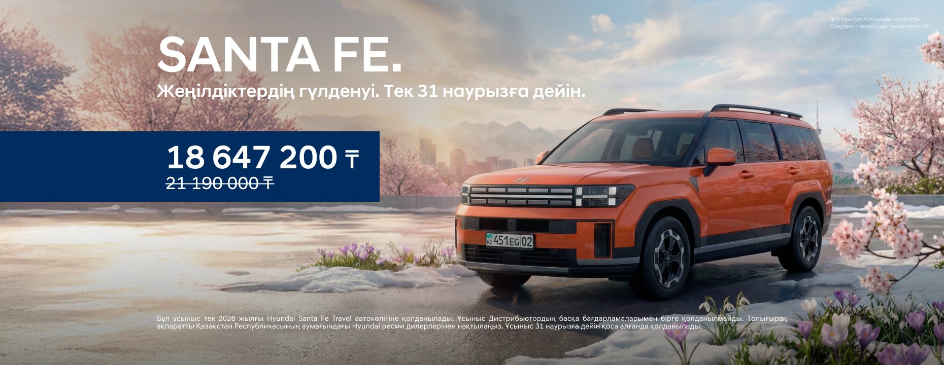 | Santa Fe | 18 647 200 ₸ баста | 3 562 800 ₸ дейін |